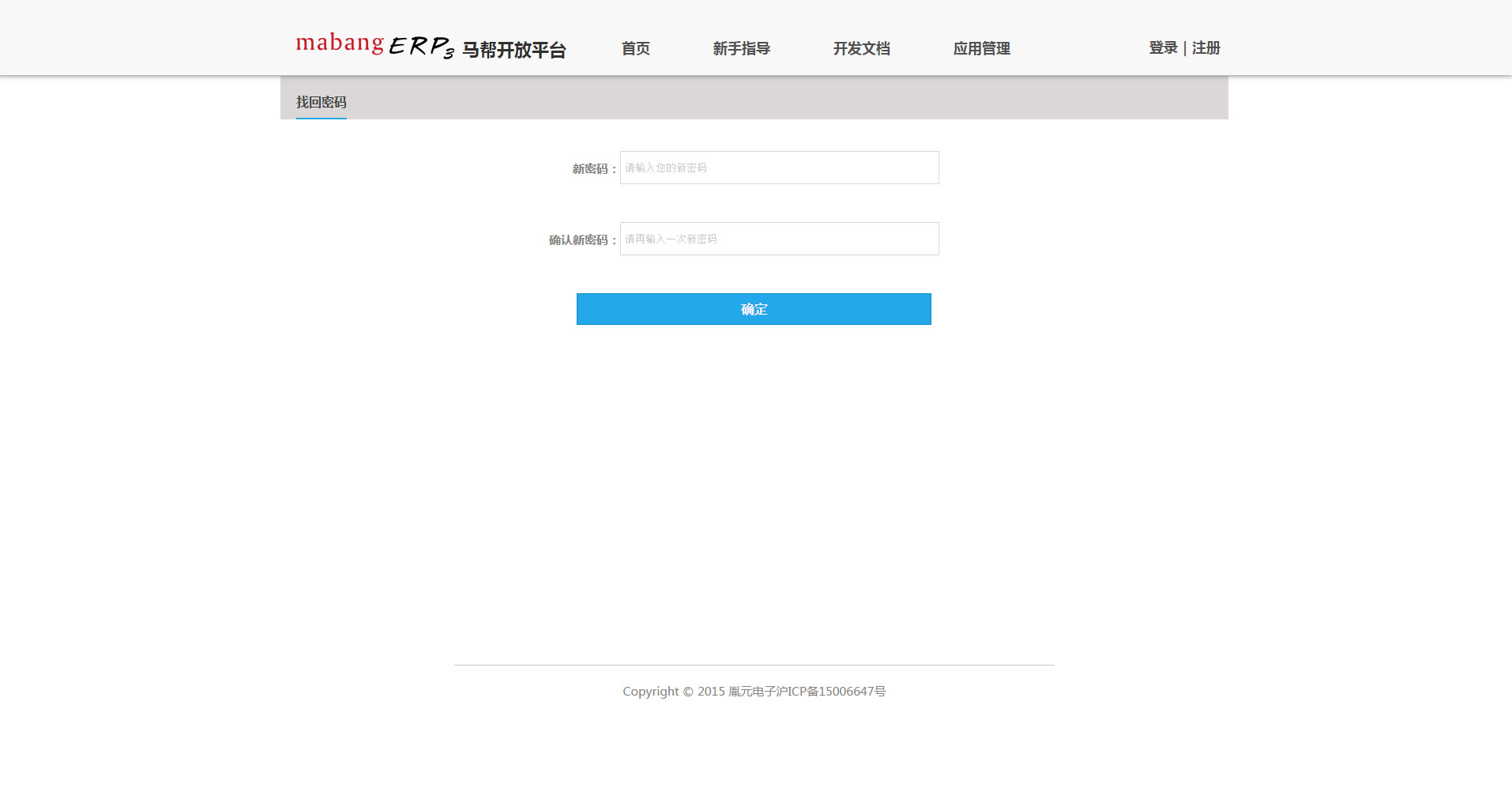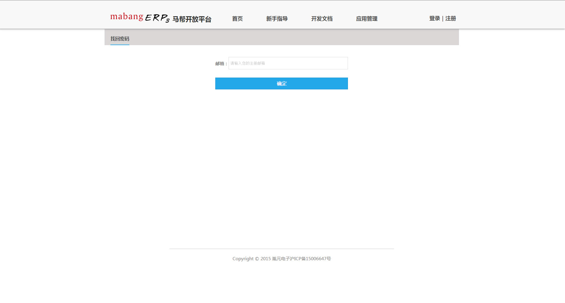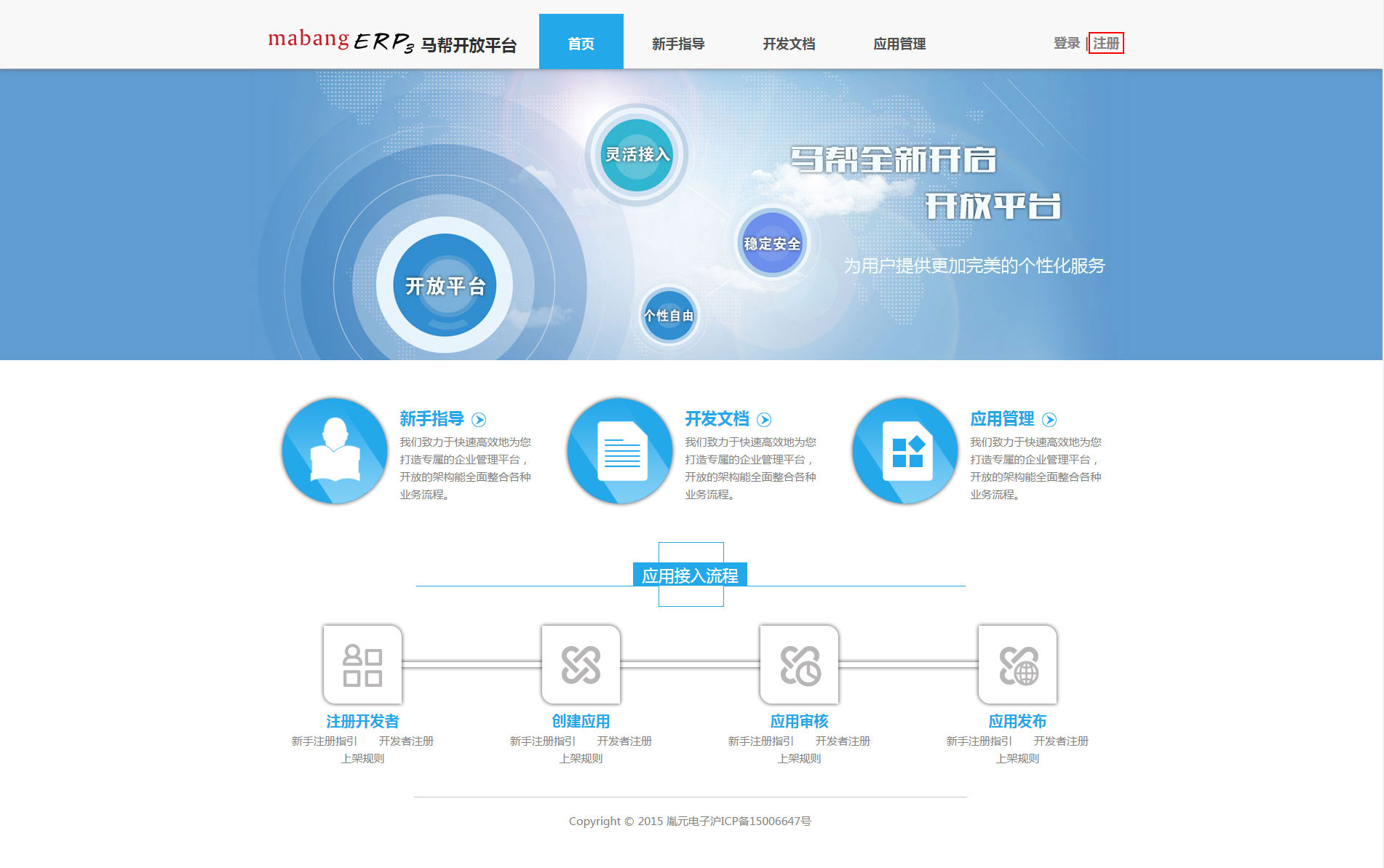 进入马帮开放平台,点击页面右上角“注册”按钮,进入开发者注册界面