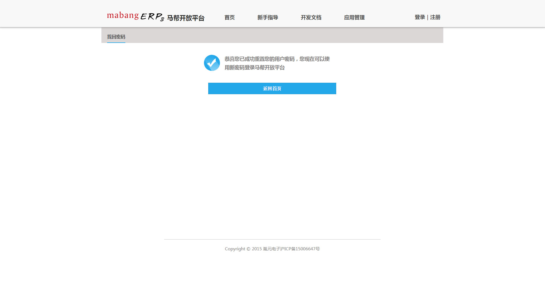 5、点击注册,系统会发送邮件到邮箱中(其中马帮用户的邮件是会在马帮ERP管理员的邮箱里),登陆邮箱在邮件中确认,完成开发者token的激活(否则登录后,无法创建应用),激活完成后,您就可以创建应用了。